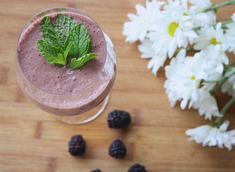 신선한 블랙베리, 우유, 요거트, 아이스크림을 블렌딩한 스무디입니다. 달콤하고 상큼한 맛과 함께 건강한 영양소를 섭취할 수 있습니다. 필요에 따라 꿀이나 설탕으로 단맛을 조절할 수 있습니다.